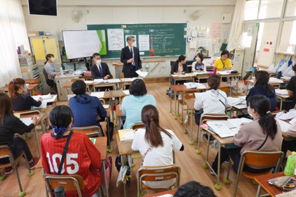 5時間目、4年6組で教員対象の参観授業(教員の研修)が行われました。今年度の本校の研究教科である、社会科の授業です。