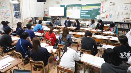5時間目、1年6組で教員対象の参観授業(教員の研修)が行われました。今年度の本校の研究教科である、社会科(1,2年生は生活科)の授業です。