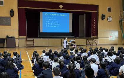 子どもたちは、目の不自由な方が普段どのような見え方をしているか、どんなことを周りの人たちにしてもらいたいかなど、Kさんの話を熱心に聞いていました。
