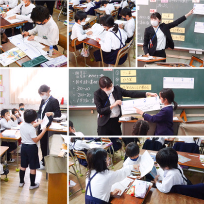 3時間目、算数の学習。自分の考えた方法で、「2.8」という小数の表し方を考えていました。