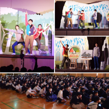 劇団わらび座によるミュージカル「風子、飛べー!」を鑑賞しました。16日(水)、17日(木)の2日間で、低学年の部・中学年の部・高学年の部の3回公演していただきました。