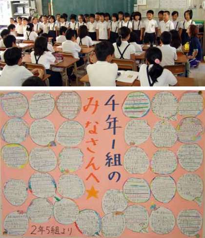 1時間目の終わりに、2年5組の子たちが4年1組の教室へやってきました。