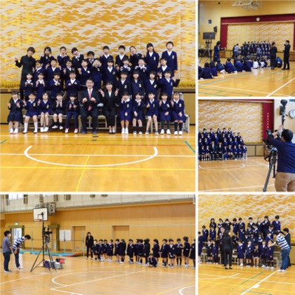 撮影時間は、1学級10分程度です。各学級とも予定時刻前に講堂に来て、スタンバイしてくれていたので、スムーズに撮影できました。