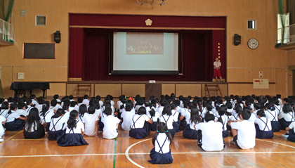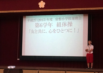 5時間目、運動会の組体操のオリエンテーションが行われ、6組担任のN先生から、組体操のめあてや心構え、約束、練習の進め方などの話がありました。