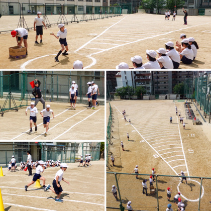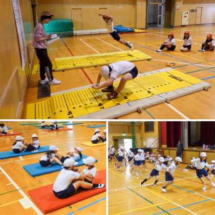 先週からの5日間、新体力テストを行いました。種目は、1,2年生は3種目、3〜6年生は8種目です。