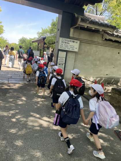初めての遠足で、子どもたちは元気よく登校しました。道の歩き方や、電車の中での約束もしっかりと守ることができました。
