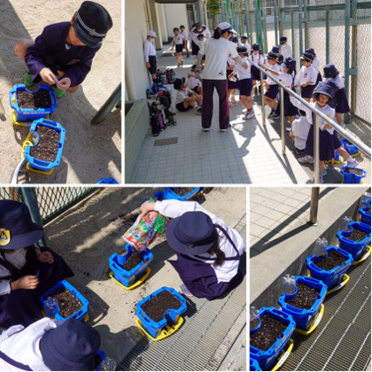 1年生のみなさん、芽が出るのを楽しみに待ちましょう。水やりを忘れずにね!