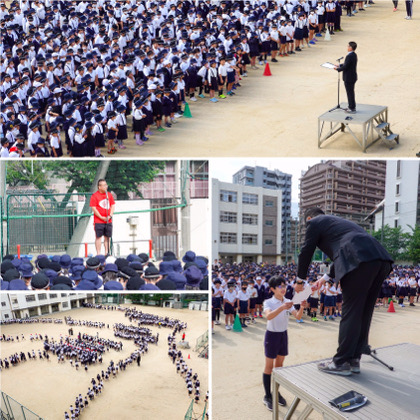 児童朝会は、毎週月曜日の朝に行っていますが、この間、Teamsを活用したオンラインで行っていました。今年度は、月の初めの月曜日は運動場で、それ以外の月曜日はオンラインで児童朝会を行うことにしています。