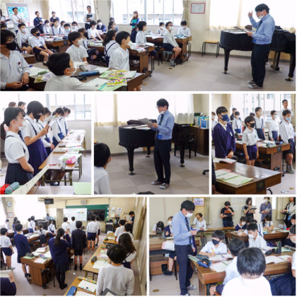 6時間目、音楽の学習。「明日という大空」「おぼろ月夜」の2曲を学習しました。