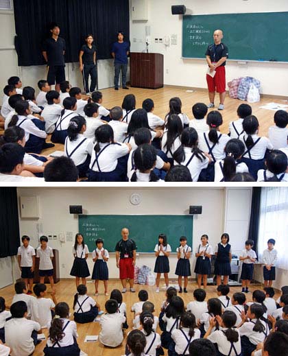 応援団担当教員と、4〜6年生の応援団員の初めての顔合わせ。放課後、応援団決起集会が行われました。運動会を盛り上げようという気合いの入った子どもたちが、多目的室に集まりました。