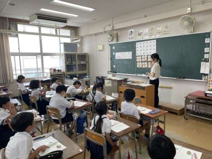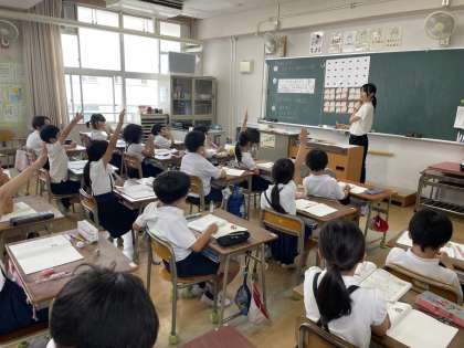 「23個あるケーキを、4個入りの箱につめるには何箱必要か」という課題に対して、一人一人がそれぞれ図やカードを使って自分の考えをまとめていました。また、わり算の結果出てくる「あまり」をどう扱うかがポイントでしたが、友だちの考えも参考にしてたくさん意見を発表することができました。