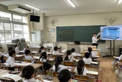 5時間目に、M先生による算数科の公開授業がありました。授業では、長さの単元「どちらがながい」を学習しました。