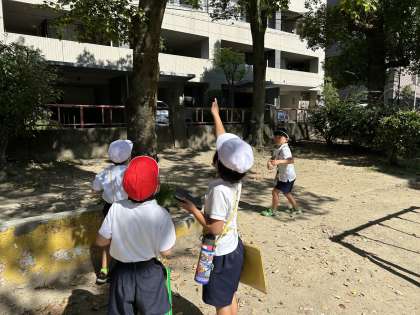 この日は、とても天気が良く、暑かったため、15分程度しか探検できませんでしたが、目や耳や手などの五感を働かせて、夏の公園を体感しました。