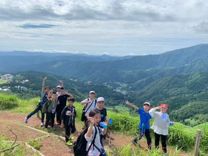 頂上に着いた児童たち、良く登りました!