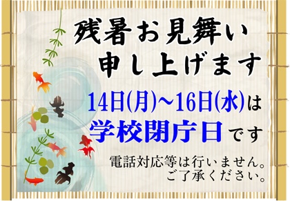 学校閉庁日のお知らせ(8月14日)