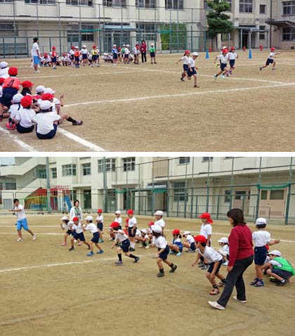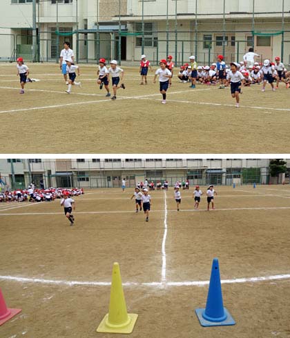 「ドン!」を待ちきれずに、つんのめる子、多数。