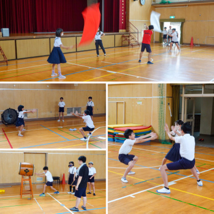 演舞、手拍子、団長同士のかけあい、振り付け等。応援合戦を、そして運動会を盛り上げるために、奮闘する応援団です。運動会当日が楽しみですね。