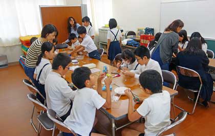 6時間目の委員会活動の時間、PTA学級委員会の実行委員さん3名が来てくださり、いっしょにベルマークの送り出しに向けた作業をしました。