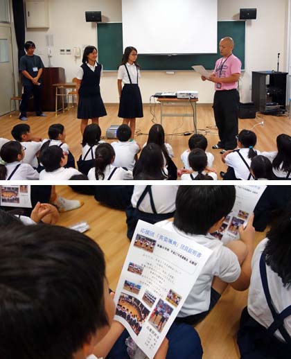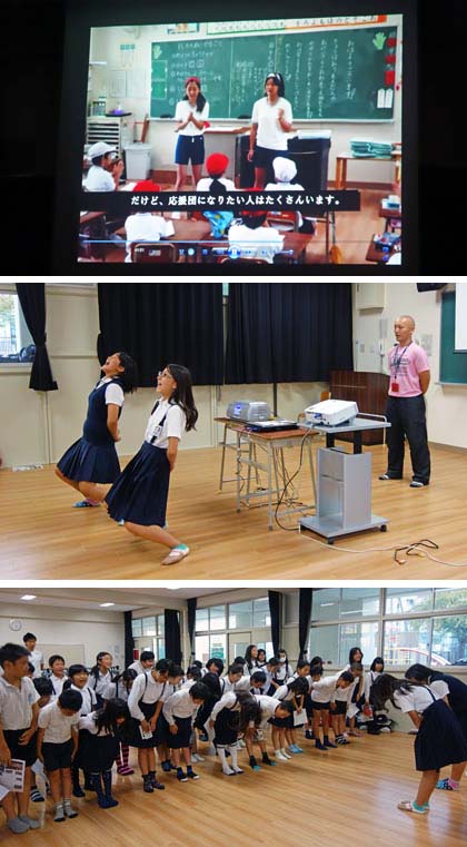 放課後、多目的室で応援団の解団式が行われました。全員に「応援団認定証」が手渡され、活動をまとめたフォトムービーが上映されました。