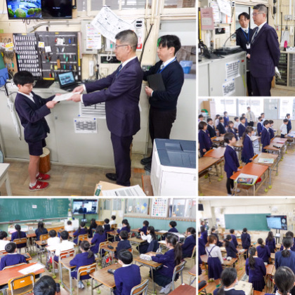 校長先生から5年生の代表児童に「修了証」が授与されました。