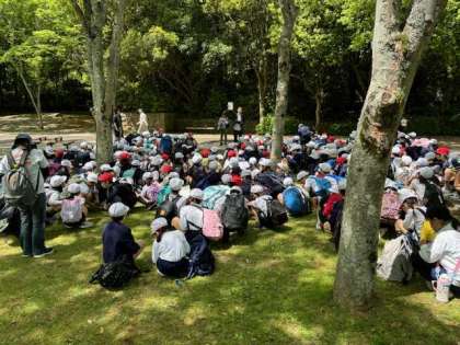 錦織公園に無事到着です。さて、今から班行動でオリエンテーリングです。ミッションをクリアしながら、ゴールを目指します。