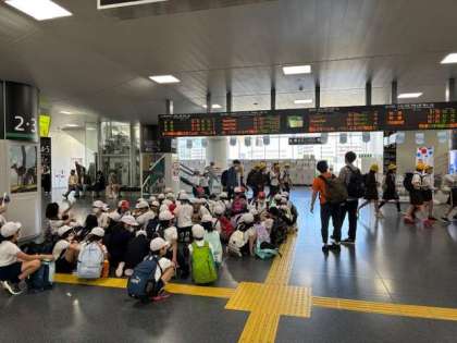 奈良駅に到着です。他校の児童もちらほらいて、多くの人出が予想されます。