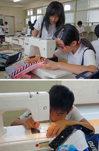 2時間目。家庭科室でミシンと格闘していたのは5年3組の子どもたちです。