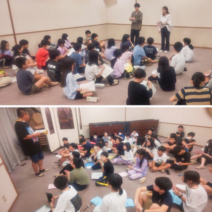 就寝準備と並行して、班長会議と部屋長会議がそれぞれ行われました。1日の振り返りと明日の予定、部屋での過ごし方や明朝の支度等について、担当の先生から話がありました。部屋長は、会議後、さっそく同部屋の子たちに内容を伝えていました。