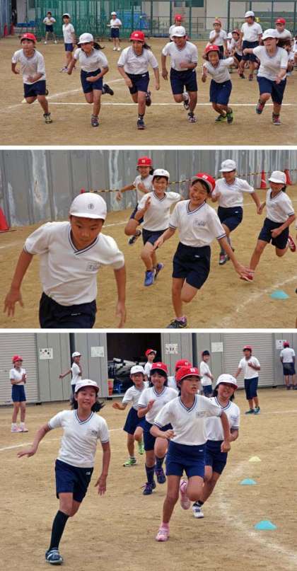5時間目は講堂で、6時間目は運動場で、ともに走競技の練習でした。