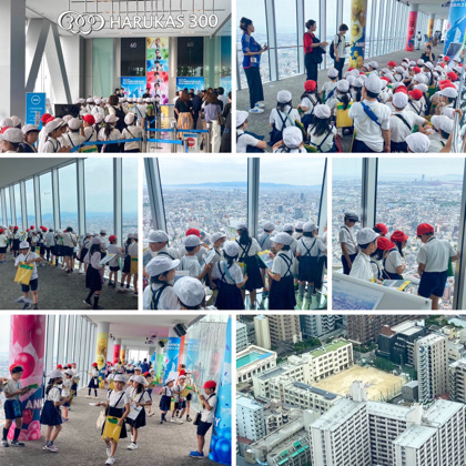 常盤小学校の校区にある超高層ビル、あべのハルカス。15分ほど歩けば、ハルカスに到着です。いったん16階まで上がって高速エレベーターに乗り換え、展望台のある60階へGO!