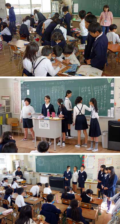 5日(木)のたてわり班長会議で、それぞれの班が出すお店(ゲームコーナー)の内容が決まっています。それを受けて、それぞれの教室に2班ずつ集まって(2つの班で1つのお店を出します)当日の役割や準備物の確認、遊びのルール決め等をしました。
