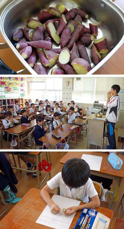 朝8時前から、あちこち忙しそうに動き回っている2年生の先生方。どうしたのか聞いてみると、あのサツマイモを家庭科室で蒸しているのだとか。ということは…
