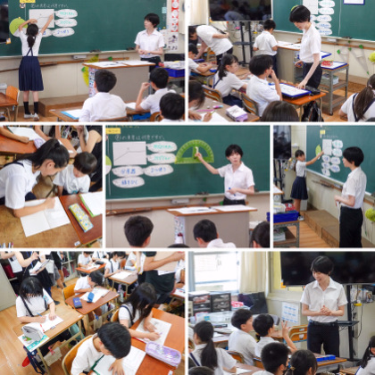 5時間目、4年1組で教員対象の研究授業(教員の研修)が行われました。今年度の本校の研究教科である、算数科の授業です。