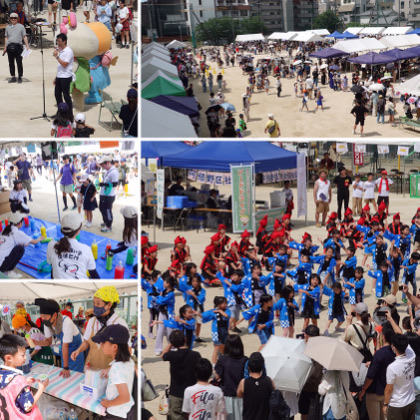 ときわ学童の子どもたちによる演舞で始まったオープニングセレモニー、事業委員長や区長、校長先生のあいさつがありました。あべのんとあいちゃんも来場!