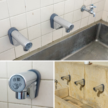 校内の照明のLED化と、手洗い場の自動水栓化の工事が行われました。これは、国と大阪市教育委員会が進める、省エネルギー促進のための「ESCO事業」として行われました。