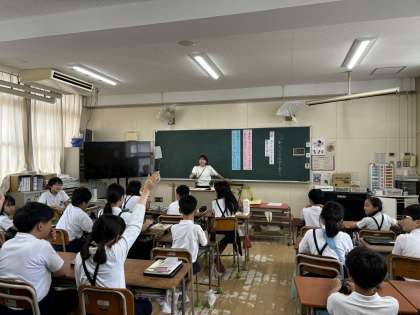 2日(火)4時間目に5年1組F先生による国語の公開授業がありました。授業では単元「心の動きを短歌で表そう」を学習しました。
