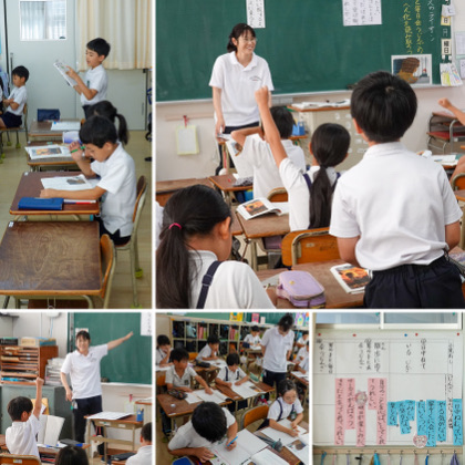 この日の授業では、男の子と出会ったときのじんざの行動や様子、気持ちを読み取っていきました。じんざの気持ちがどう変化したのか、なぜそう考えたのか。子どもたちは、自分の意見を発表していました。