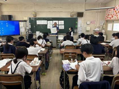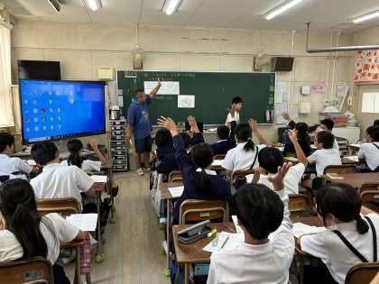 これまで学んだことをいかして、複合図形の体積を求める学習でした。3組の子ども達はとても積極的な子が多く発想もユニークで楽しんで学習に取り組めていました。課題の複合図形についても形をハルカスに見立てて、どのように工夫すれば体積を求めることができるか一生懸命知恵を振り絞っていました。