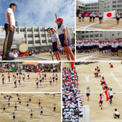 運動会の様子をアップしていきます。まずは開会式と応援合戦の様子から。運動会日和の中、開会です。