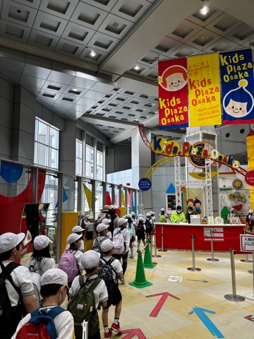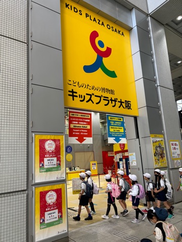 キッズプラザに到着した時の様子です!電車内はとても静かに過ごせていました、さすが2年生。しっかりと説明を聞いていよいよ入館です。