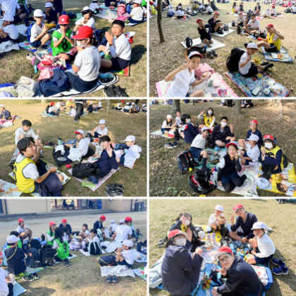 異学年で一緒に食べる昼食。しかも、平日、青空の下の長居公園。