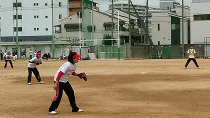 毎週日曜日の10:00〜11:30に、運動場で練習をしているPTA女子ソフトボール部。少し前のことになりますが、年に1度の大会、阿倍野区PTA女子ソフトボール大会(今年は10月11日に開催)に、今年も参加しました。
