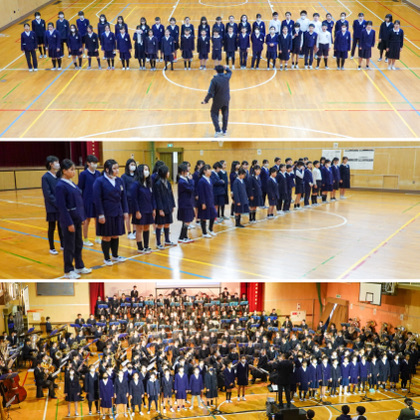 昼休み、5,6年生の有志40名ほどが講堂に集まりました。合唱の練習をするためです。