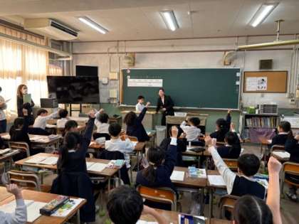 この授業は、常盤小学校の授業研究会の取り組みの一環で、6学年それぞれが1本ずつ研究授業を行いましたが、今回が今年度最終の授業となりました。2年4組以外の児童が下校してからの授業なので、たくさんの先生が参観にきました。子どもたちは普段見ない大勢の先生方を目の当たりにして緊張していましたが、一生懸命頑張りました。