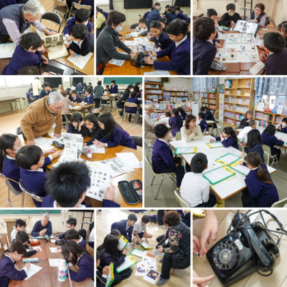 地域の皆様には、班に1〜2人ずつ入っていただきました。お話に加えて、写真や資料、実物を見せていただくことができ、子どもたちにとっては「へぇ〜!」や「えーっ!」がたくさんあったようです。