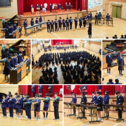 すでに、何度か講堂で演奏をしている5年生。入退場もスムーズで、落ち着いて演奏できていました。聴いていた6年生は、去年の自分たちの演奏を思い出したことでしょう。