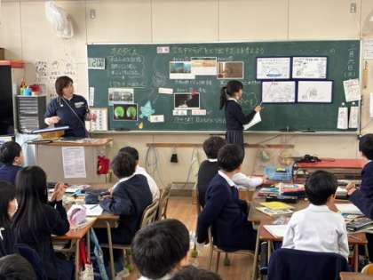 授業では、これまで学習してきた知識をいかして、「空気中から水を取り出す方法」をみんなで考えました。冷蔵庫を使う案だったり、塩水を使う案だったり、自分達が実験して試してみたいことについていっぱい話し合えた1時間でした。