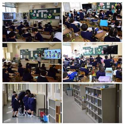 1年生は始業式の配信中、それぞれの学級で学校での生活の約束を確かめました。登校して靴を履き替えること、ランドセルの中の教科書などをどうするか、トイレの使い方・・・。しっかりお話を聞いていました。