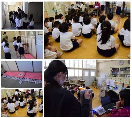 1年生にとってはじめての発育測定です。少し緊張気味ですが、きれいに上靴を並べて入室し、静かに測定の順を待つことができました。