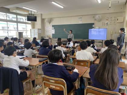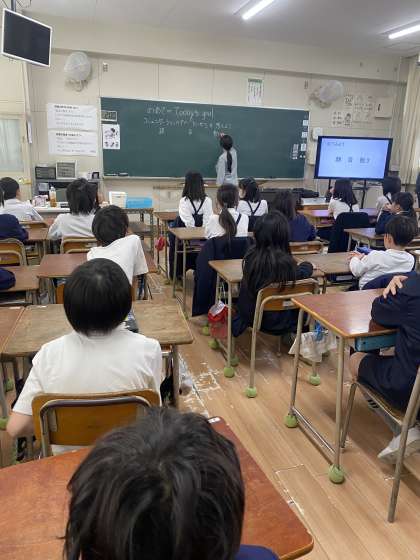 5年生になって初めての外国語の授業です。初めての外国語の授業では、新しい2人の先生の自己紹介を聞きました。5年生の子どもたちはとても楽しそうに授業に参加し、これからの授業について、一生懸命話を聞くことができました。